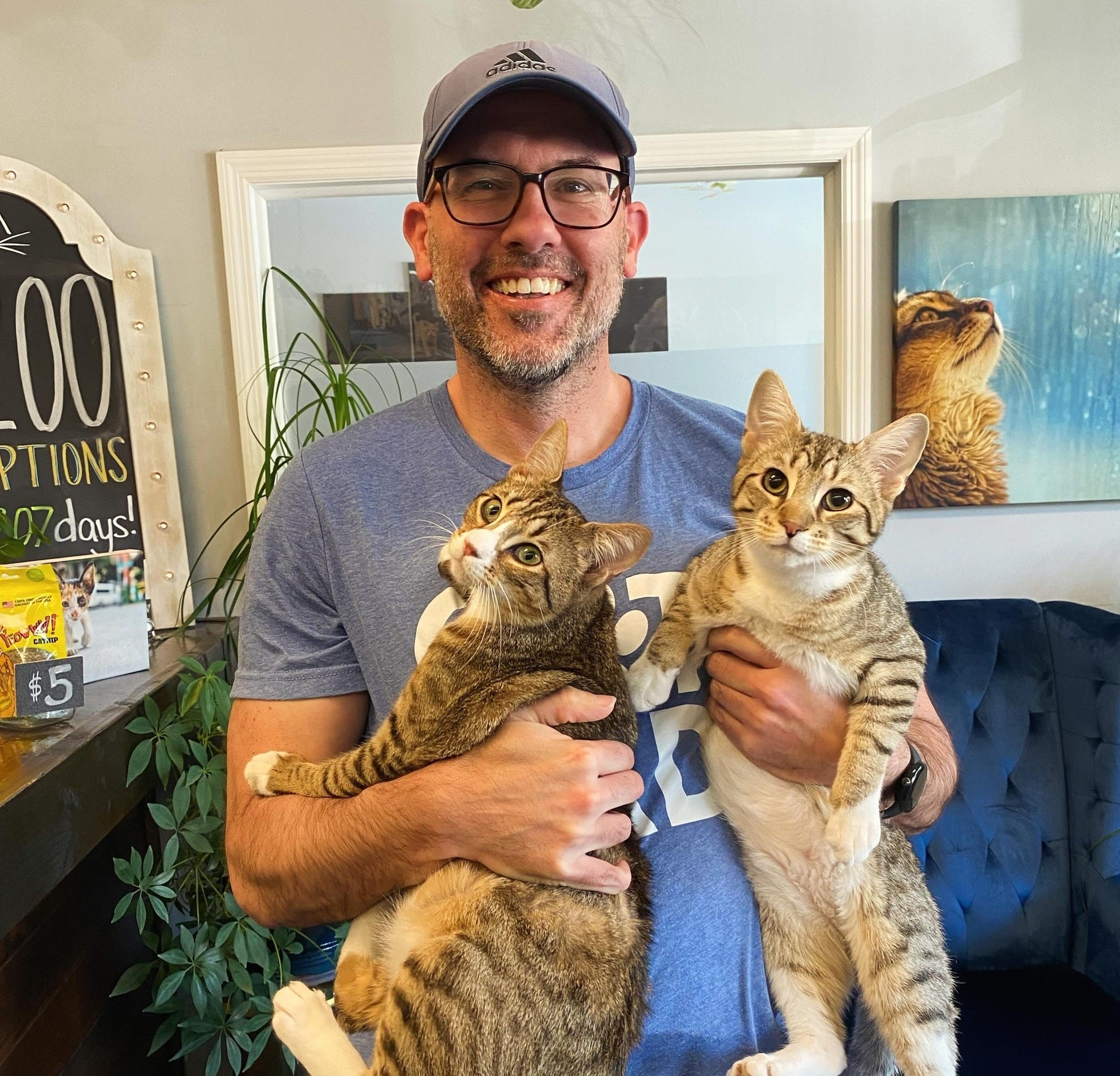 About 6 months after Mia passed away, I started to warm up to the idea of fostering a cat. But then I visited the Naughty Cat Cafe in Chattanooga, TN, where I met Niko and Milo. After visiting twice more, I decided to adopt them - 2 bonded brothers. They are two one-year-old bundles of energy and mischief. They’ve reminded me of the joys (and chaos) of kittenhood and reignited my passion for giving cats the best lives possible. The picture below is the day I brought them home from the cat cafe. Niko is on the left, and Milo on the right.