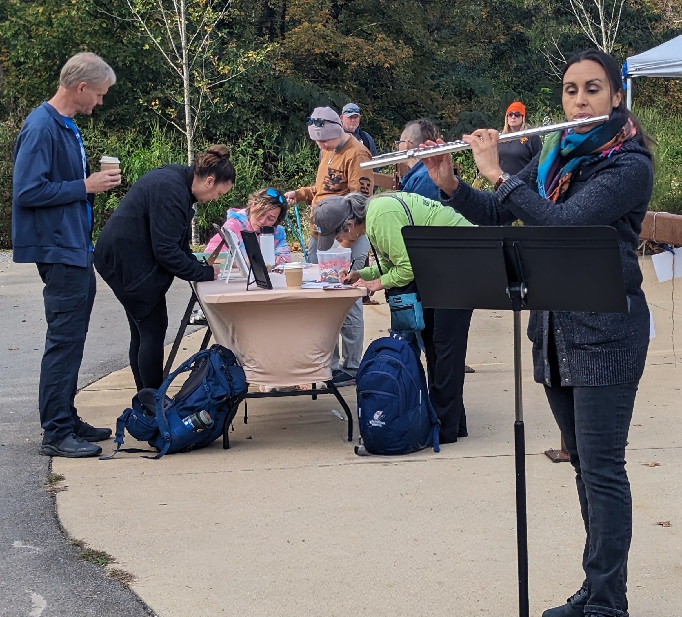 Lisa began playing the flute as hikers quietly wrote the names of the pets they’ve lost — hanging their notes and photos on the Memory Wall. The air was cool, the music soft, and you could feel something sacred moving through the space.
