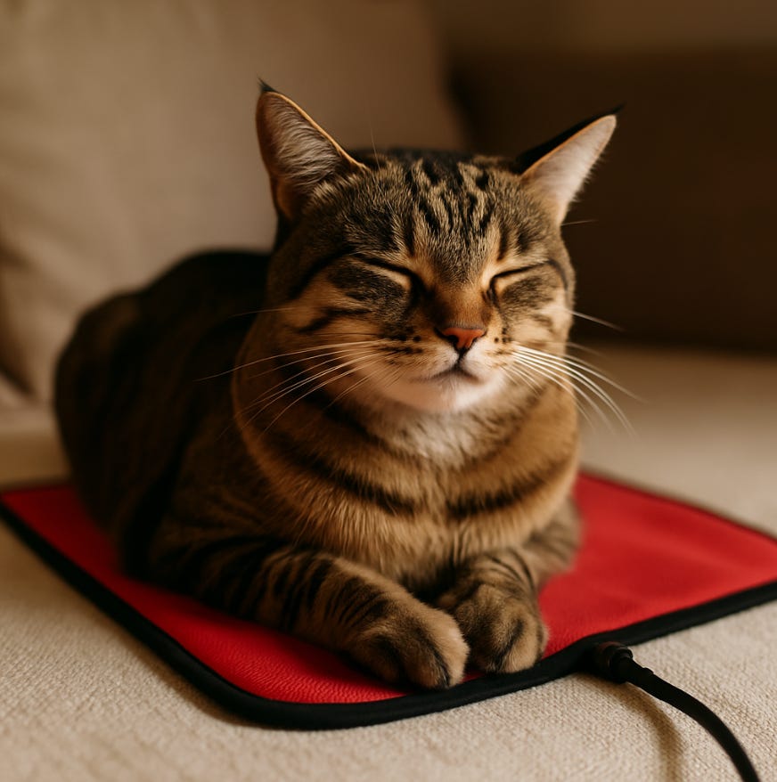 I had a warming mat she loved and slept on daily. Dr. Paola says many cats are naturally drawn to red light mats because they’re warm, cozy, and calming. If I’d known about this sooner, I would’ve tried it in a heartbeat.